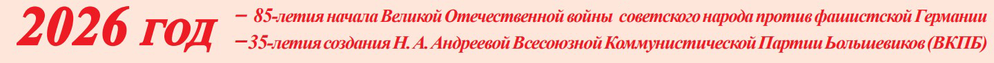 Вы находитесь на Web cтранице Центрального Комитета Всесоюзной Коммунистической Партии Большевиков, ведущего свою борьбу за возрождение социализма и СССР, против буржуазии, оппортунизма, фашизма и сионизма. Знакомьтесь с партийными материалами, изучайте Программу ВКПБ и Устав ВКПБ, читайте книги классиков марксизма — ленинизма, большевистские газеты, слушайте революционные и советские песни, вырабатывайте в себе классовое сознание, готовьтесь к будущей социалистической революции, время отступления закончилось, пора переходить в наступление.