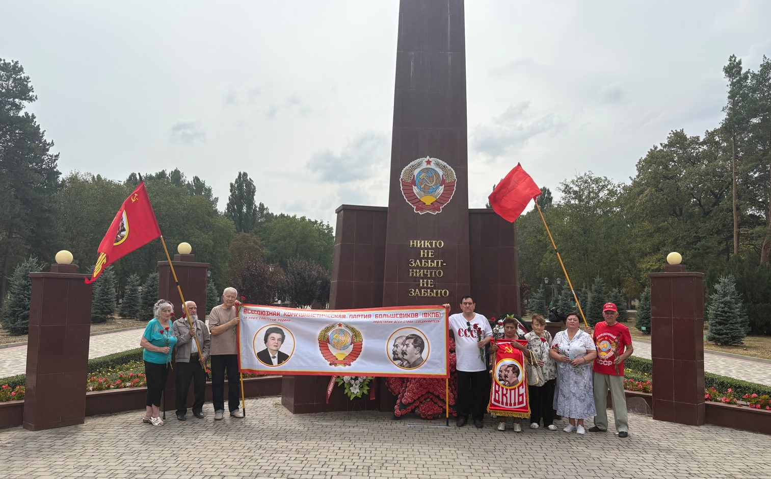 В г. Пятигорске 3 сентября 2025 г. в парке ПОБЕДЫ, в честь 80-летия Сталинской Победы над империалистической Японией, к стеле «ПОБЕДА» с новым настоящим Государственным гербом СССР были возложены цветы представителями партийных организаций Пятигорского ГК ВКПБ – тем самым был открыт на стеле «ПОБЕДА» Государственный герб СССР.
