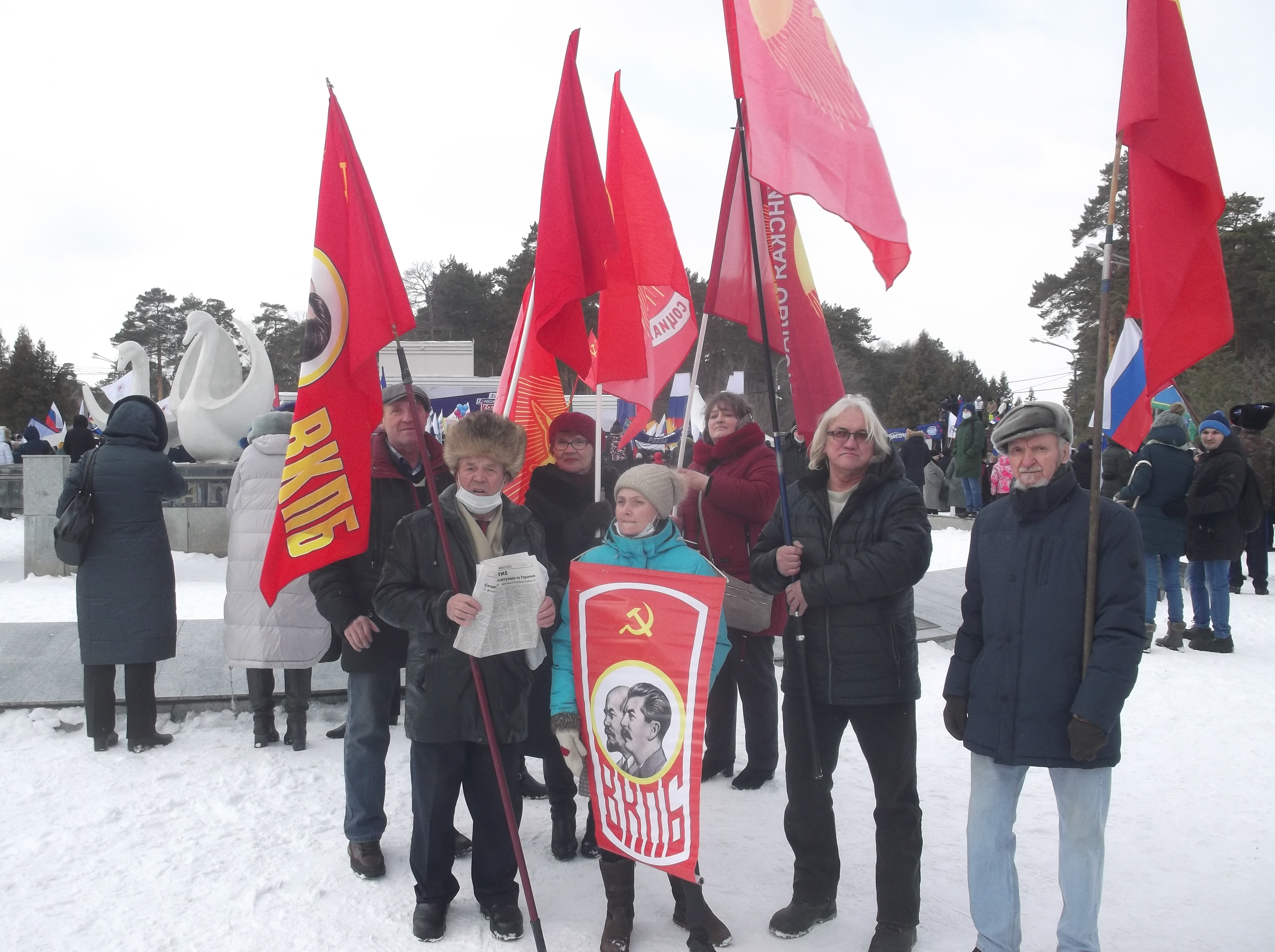 В г. Челябинске 18 марта 2022 г. представители партийных организаций ВКПБ приняли участие в общегородском митинге в парке культуры и отдыха имени Ю.А.Гагарина, посвящённого 8 - летию вхождения  Республики Крым в состав России и поддержки  признания Россией Донецкой и Луганской  Народных Республик.